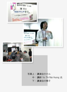講師:Qantic.Ltd マーケティングマネージャー Vo Thi Mai Huong 氏 ホーチミンからお招きした講師のマイ・フォンさんは、日本の大学、大学院で学ばれ日本文化にも精通された方です。 ホーチミンの大学で […]
