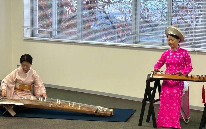 - 日越の琴の共演 演奏:菊冨美巴、三船ヴァン「荒城の月」「ふるさと」
